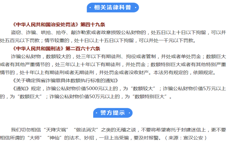 “看相算命”“做法消災”“保你一生平安順遂”,精通奇門遁甲的“高人”們,看似無所不能,實則都是“騙子”,設置圈套,一陣忽悠后,一步步誘騙事主,最終達到騙取錢財?shù)哪康摹?/span>