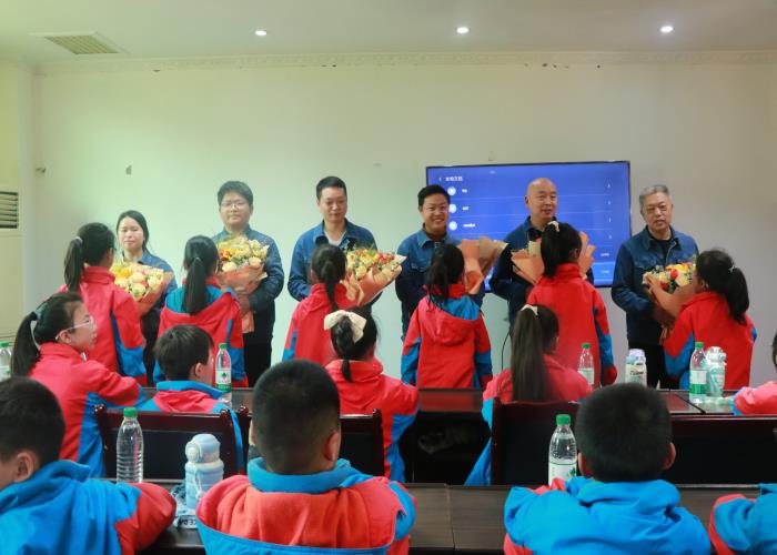 工作人員結(jié)合世界水日與中國水周的主題,為同學們深入淺出地講解中國水資源特點,以及污水產(chǎn)生的危害和處理的必要性,讓大家深刻認識到保護水資源刻不容緩。小學生代表們獻鮮花合影留念、觀看工藝處理視頻(動畫片)。