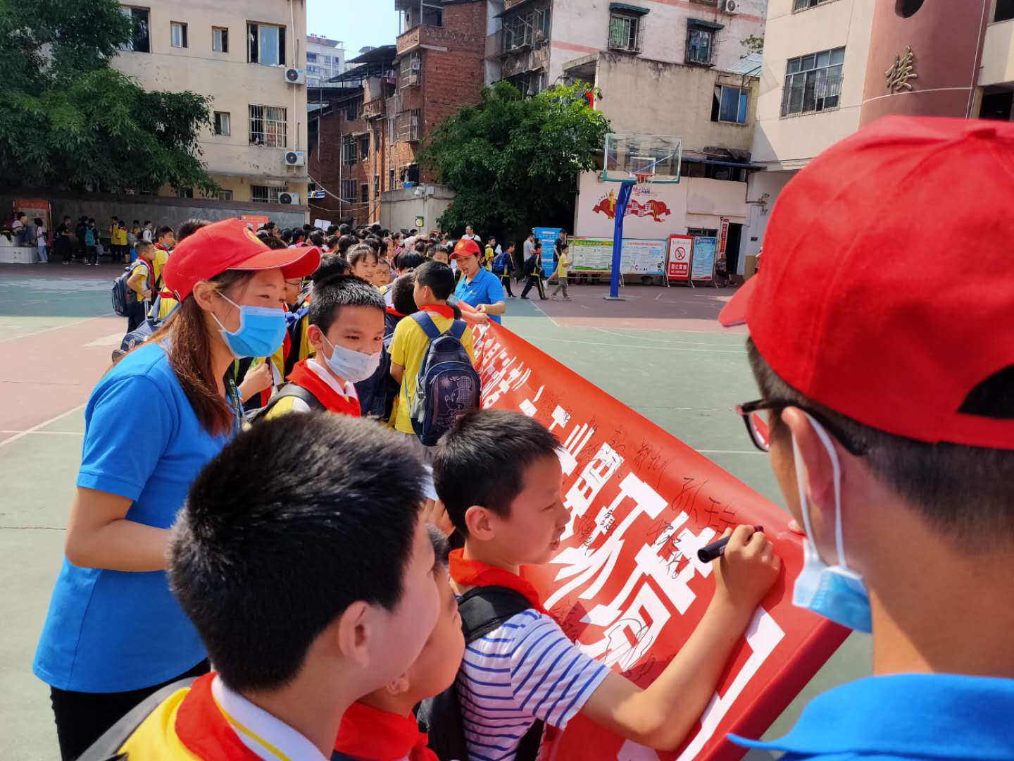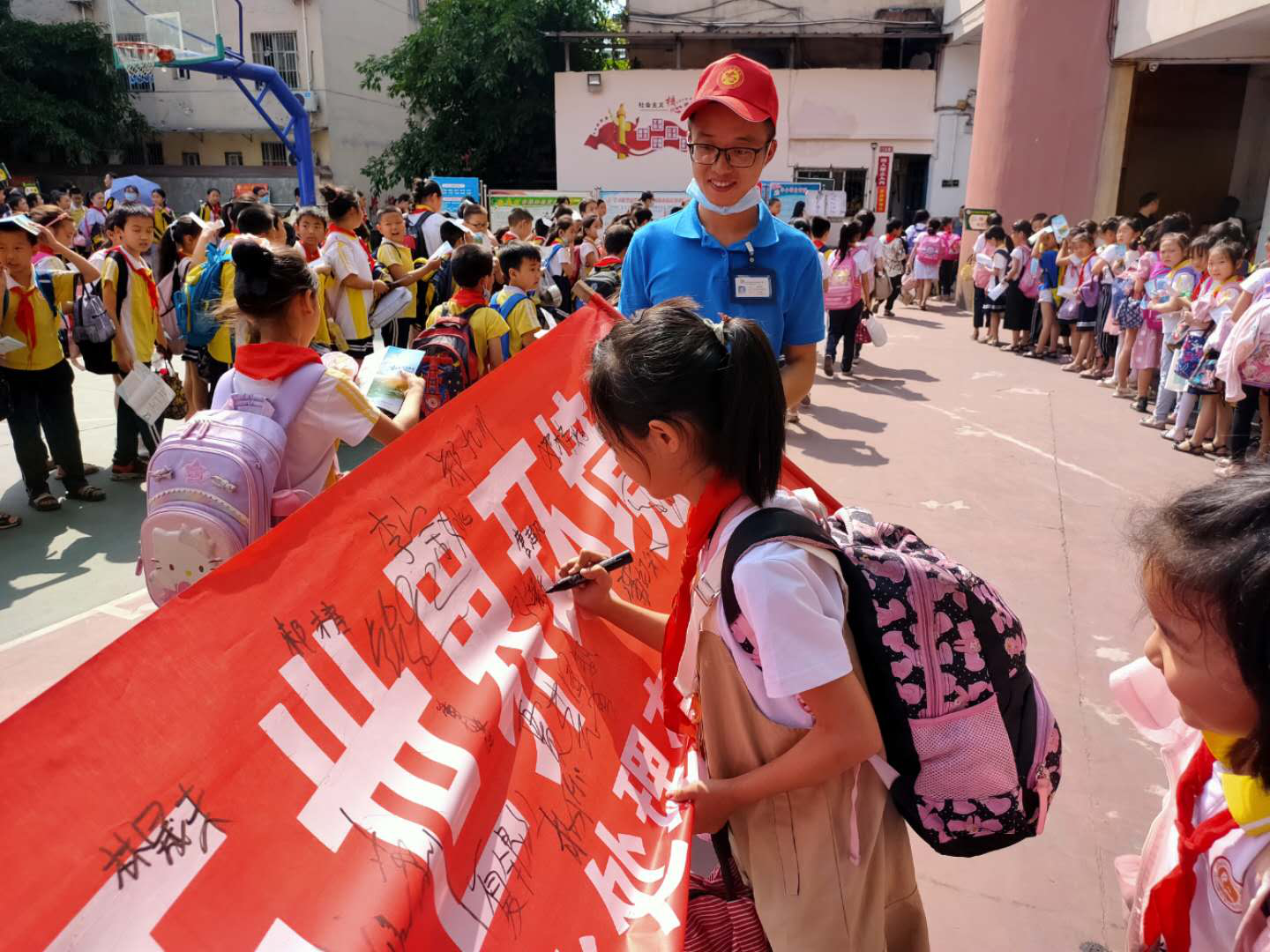 活動中,志愿者們首先采取集中宣講和你問我答的方式向廣大師生廣泛普及環(huán)保知識;呼吁廣大師生積極參與到環(huán)境保護(hù),堅持從自己做起、從身邊做起,節(jié)約每一滴水、每一度電、每一張紙,進(jìn)一步調(diào)動了全體學(xué)生爭做“環(huán)保小衛(wèi)士”的熱情。同時,也希望用師生們的實際行動影響和帶動各自家庭的每一個人,讓更多的人共同參與到生態(tài)環(huán)境保護(hù)工作中來,爭做環(huán)境保護(hù)的宣傳員和行動者,實現(xiàn)人人關(guān)心環(huán)保、人人參與環(huán)保的良好氛圍。其次,志愿者們積極開展了“美麗中國、我是行動者”簽名承諾活動,全校師生更是踴躍參加,并主動宣誓承諾,一定做一名合格的“環(huán)保小衛(wèi)士”。